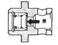 (7)檢查單向閥的動作,當(dāng)用螺絲改錐或其它工具推壓單向闊時,如下圖所示。閥的動作應(yīng)平穩(wěn),如不合要求,應(yīng)更換。