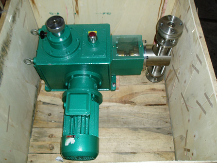 電機(jī)經(jīng)聯(lián)軸器帶動蝸桿并通過蝸輪減速使主軸和偏心輪作回轉(zhuǎn)運(yùn)動,由偏心輪帶動挺桿在導(dǎo)筒內(nèi)作往復(fù)運(yùn)動。連同柱塞,通過單向閥的作用使泵腔內(nèi)逐漸形成真空,吸入閥打開,吸入液體;當(dāng)柱塞向前死點移動時,此時吸入閥關(guān)閉,排出閥打開,液體在膜片的推動下排出。在泵通過調(diào)節(jié)一定的行程的往復(fù)順還工作形成連續(xù)有壓力、定量的排放液體。